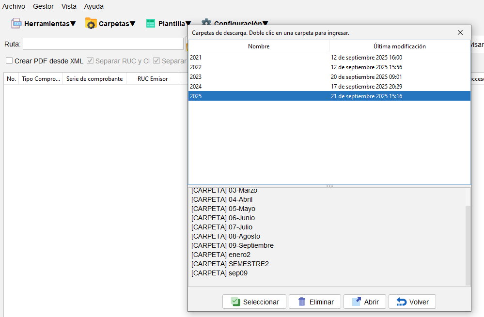 - Gestión de Empresas y Descargas : Ahora puedes crear carpetas para cada empresa y gestionar sus descargas y plantillas de Excel en sus propias carpetas dedicadas. Esto te permite llevar un control perfecto y mantener toda la información de cada cliente o RUC completamente separada y ordenada.