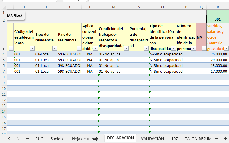 ✔ Validación de datos para generar el anexo rdep XML para el dimm.